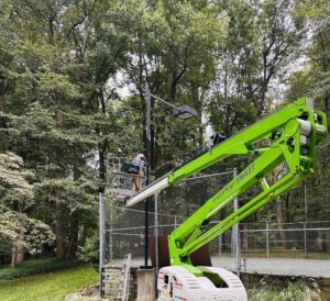 Light poles are typically 25 ft + and required special tools and techniques to properly prepare and paint. Painting Contractors of MD has company owned man lifts with trained employees to effectively paint tall light poles correctly and efficiently.